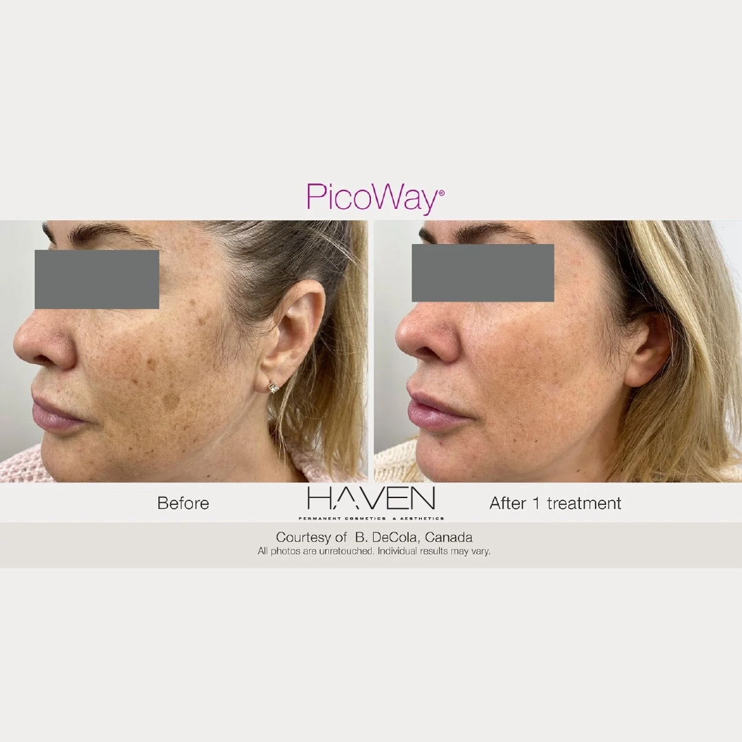 At Haven Permanent Cosmetics & Aesthetics, we use the PicoWay® Resolve Laser, an advanced fractional technology that rejuvenates your skin from the inside out. The laser emits ultra-short pulses of light energy that reach beneath the surface to target pigmentation, fine lines, acne scars, and texture concerns. This energy breaks up unwanted pigment and stimulates your body’s natural collagen production for smoother, firmer, more radiant skin.